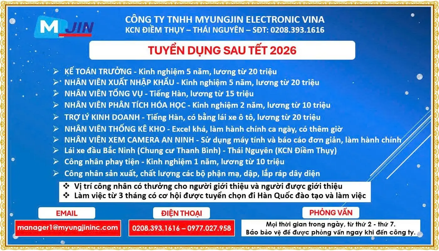 MYUNGJIN ELECTRONIC VINA - KCN Điềm Thụy, Phú Bình, Thái Nguyên