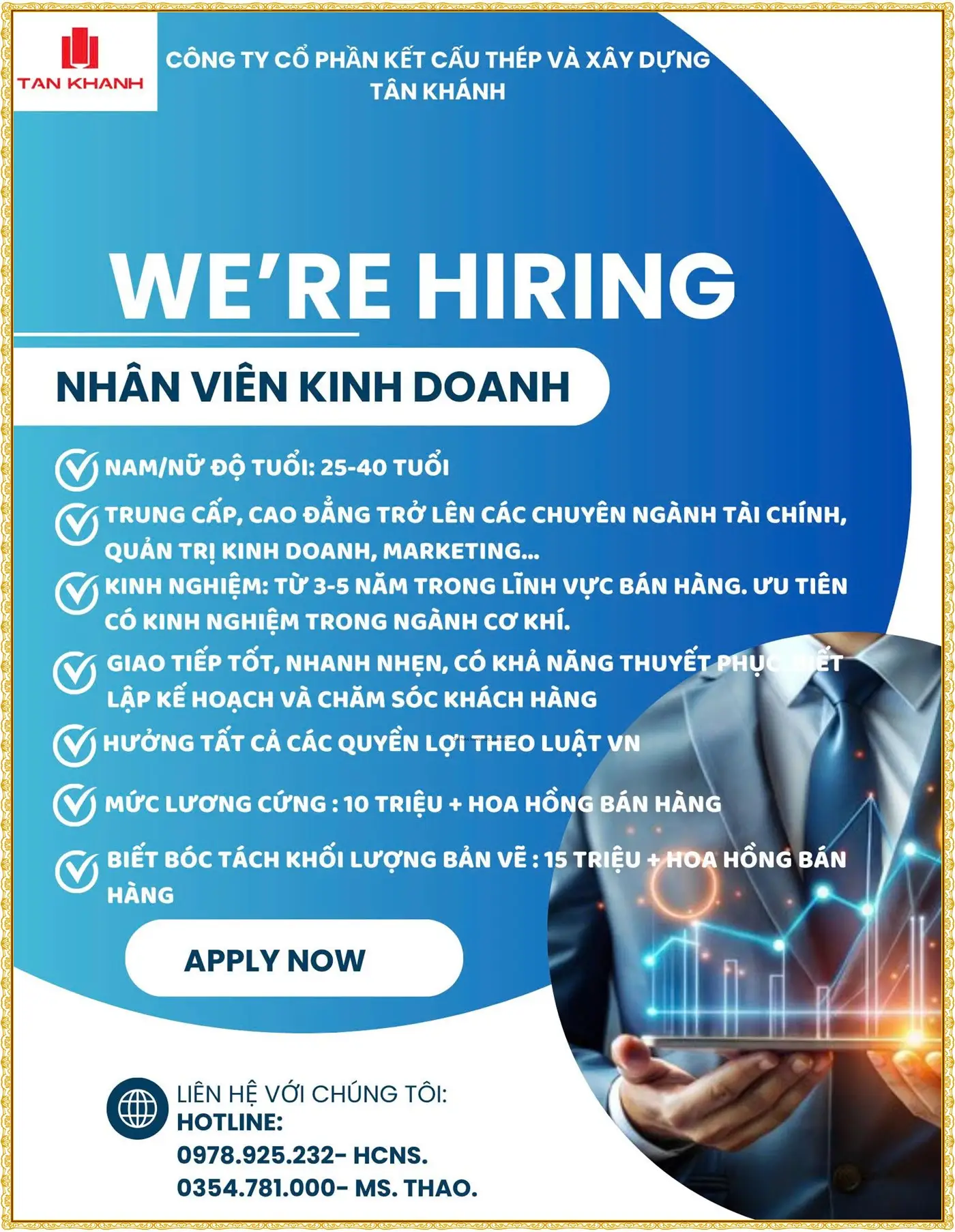 Nhân viên Data (04 người): Yêu cầu tốt nghiệp THPT trở lên, thành thạo tin học văn phòng.